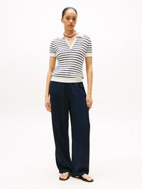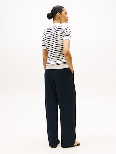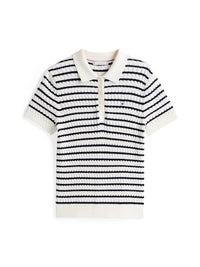 Crafted from pure cotton, the Tommy Hilfiger Cable Knit Polo Jumper features a fine gauge cable knit that offers both texture and refinement. Designed with a classic polo collar and a four-button placket, it combines timeless style with subtle detailing. The rib-knit collar, cuffs, and hem ensure a tailored fit, while the Tommy Hilfiger flag embroidery on the chest adds a discreet signature touch. With a regular fit and short sleeves, this top delivers effortless sophistication suitable for any smart-casual occasion.