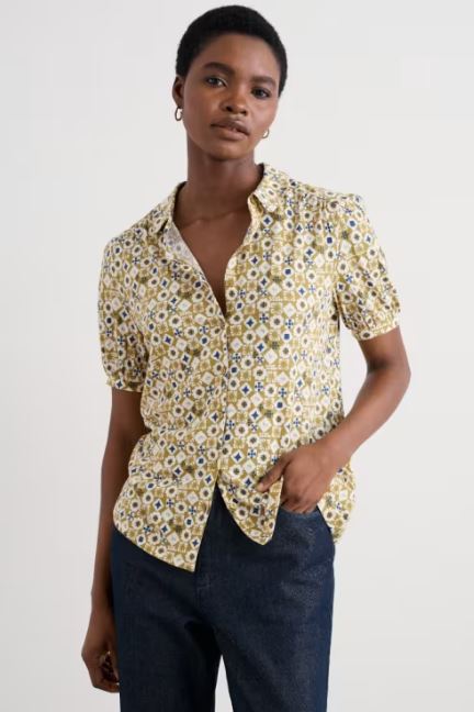 The Seasalt Embrace Shirt is the ultimate summer staple, made from a soft and sustainable blend of organic cotton. Enjoy the lightweight and breathable fabric, with gentle gathers at the shoulder and sleeve for added volume. Perfect for sunny adventures, this collared, button-up blouse will be your go-to for effortless style and comfort.