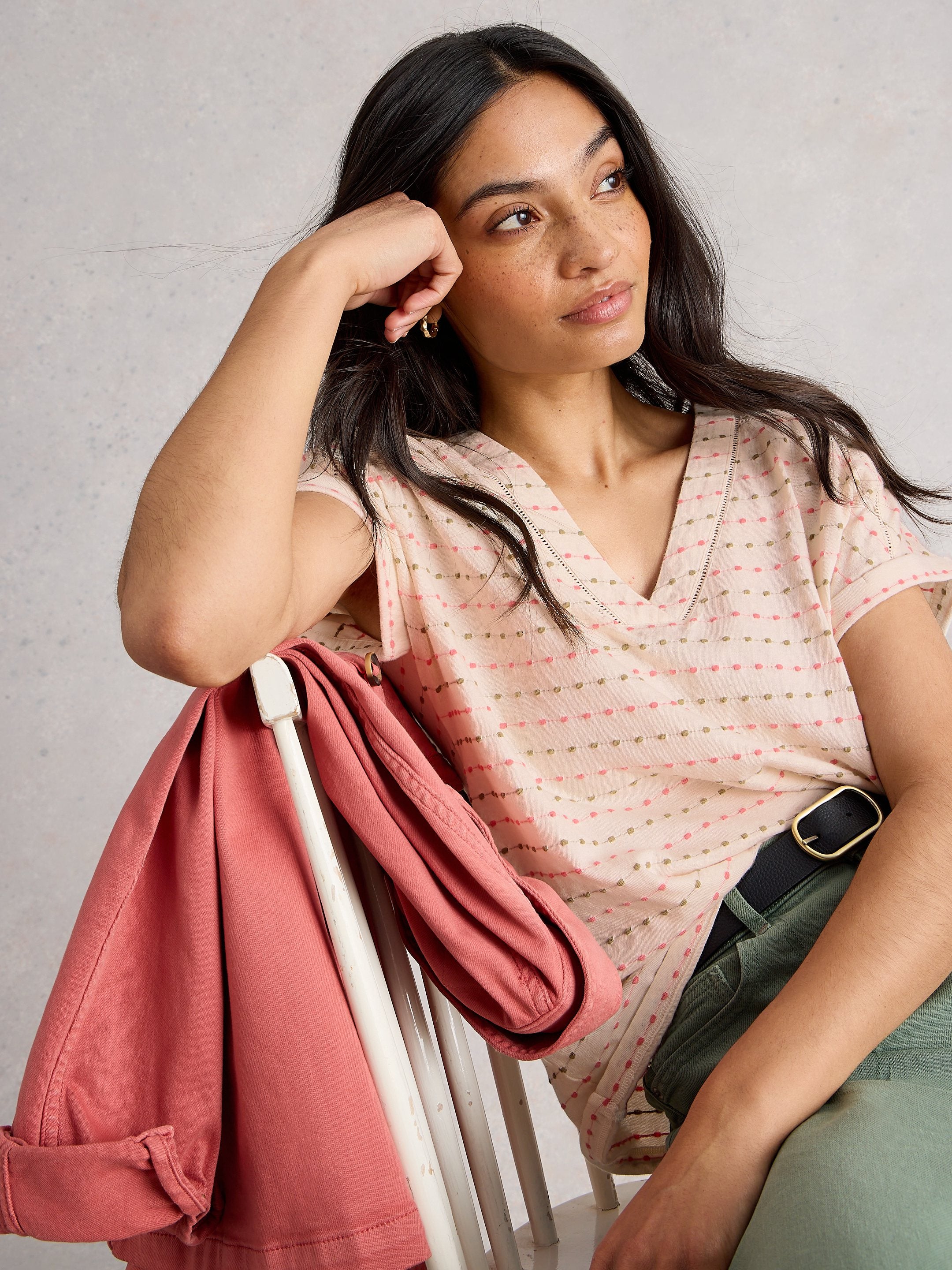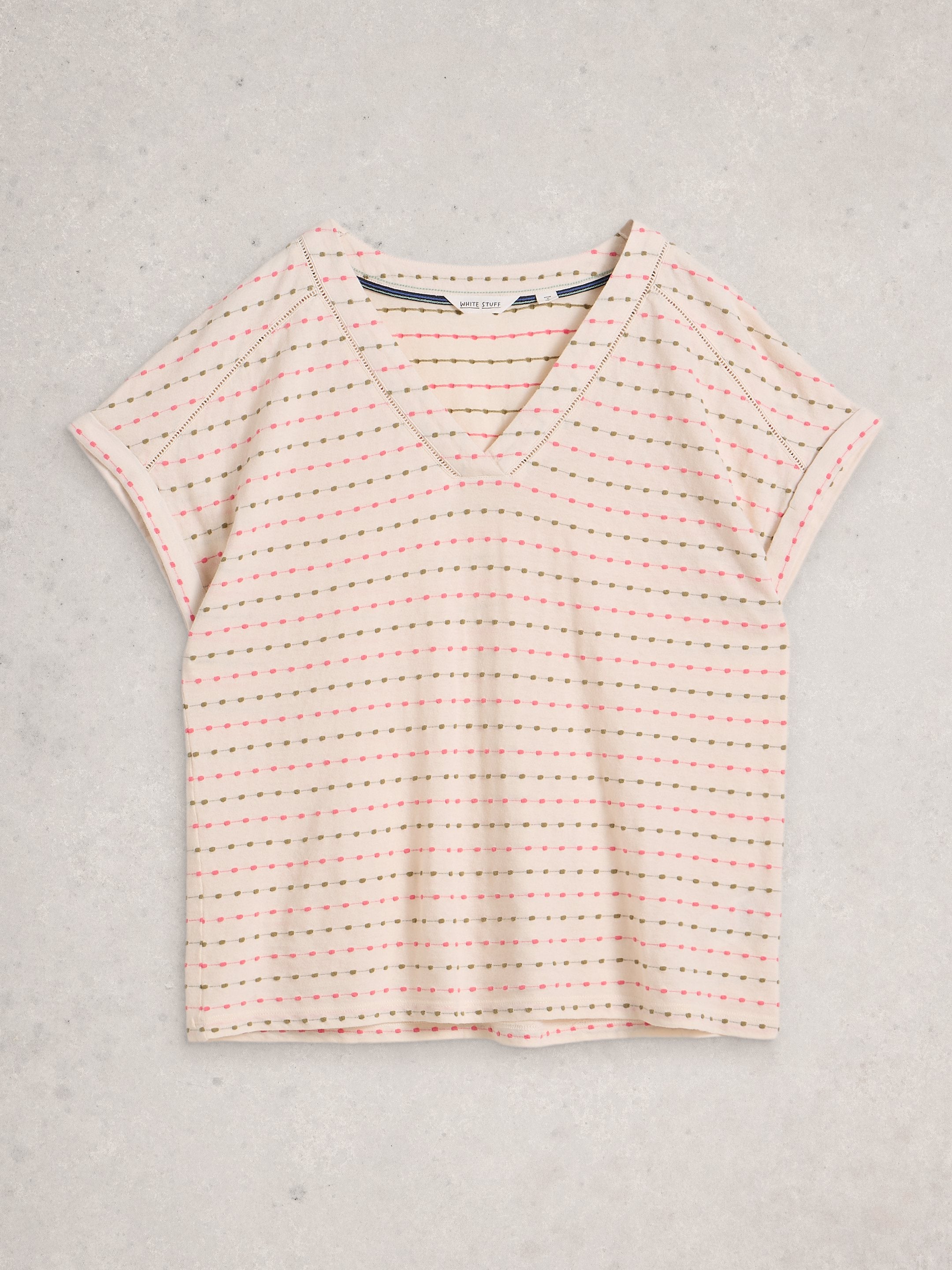 Experience comfort and style with the White Stuff Embroidered Stripe Tee, crafted from organic cotton for a soft, breathable feel. Featuring a flattering V-neck and classic fit, this short-sleeve tee is designed to become their favourite wardrobe staple. With delicate embroidery adding a unique touch, it combines effortless style with everyday comfort.