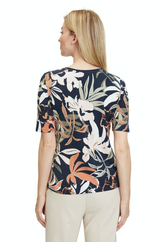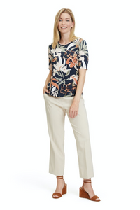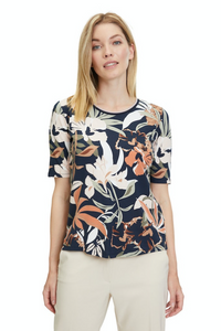 Introducing the Betty Barclay Floral Top! With its half length sleeves and round neckline, this top offers a casual fit that is perfect for any occasion. The beautiful floral print adds a touch of elegance and charm, making you stand out in any crowd. Elevate your wardrobe with this must-have piece!
