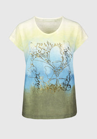 Elevate your style with the Bianca Julie Top. The gradient design and striking motif add a unique touch to this wardrobe staple. The round neckline and short sleeves offer a comfortable fit, making it perfect for any occasion. Elevate your wardrobe and make a statement with this must-have top!