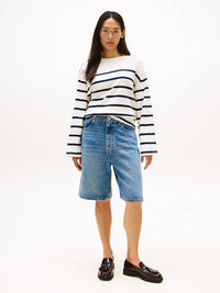 Crafted from pure cotton, the Tommy Hilfiger Boat Neck Long Sleeve Top offers a refined silhouette with a regular fit and dropped shoulders for effortless elegance. Featuring gold-tone buttons on the shoulders and subtle Tommy Hilfiger branding, including the iconic flag embroidery on the sleeve, it combines classic style with modern details.