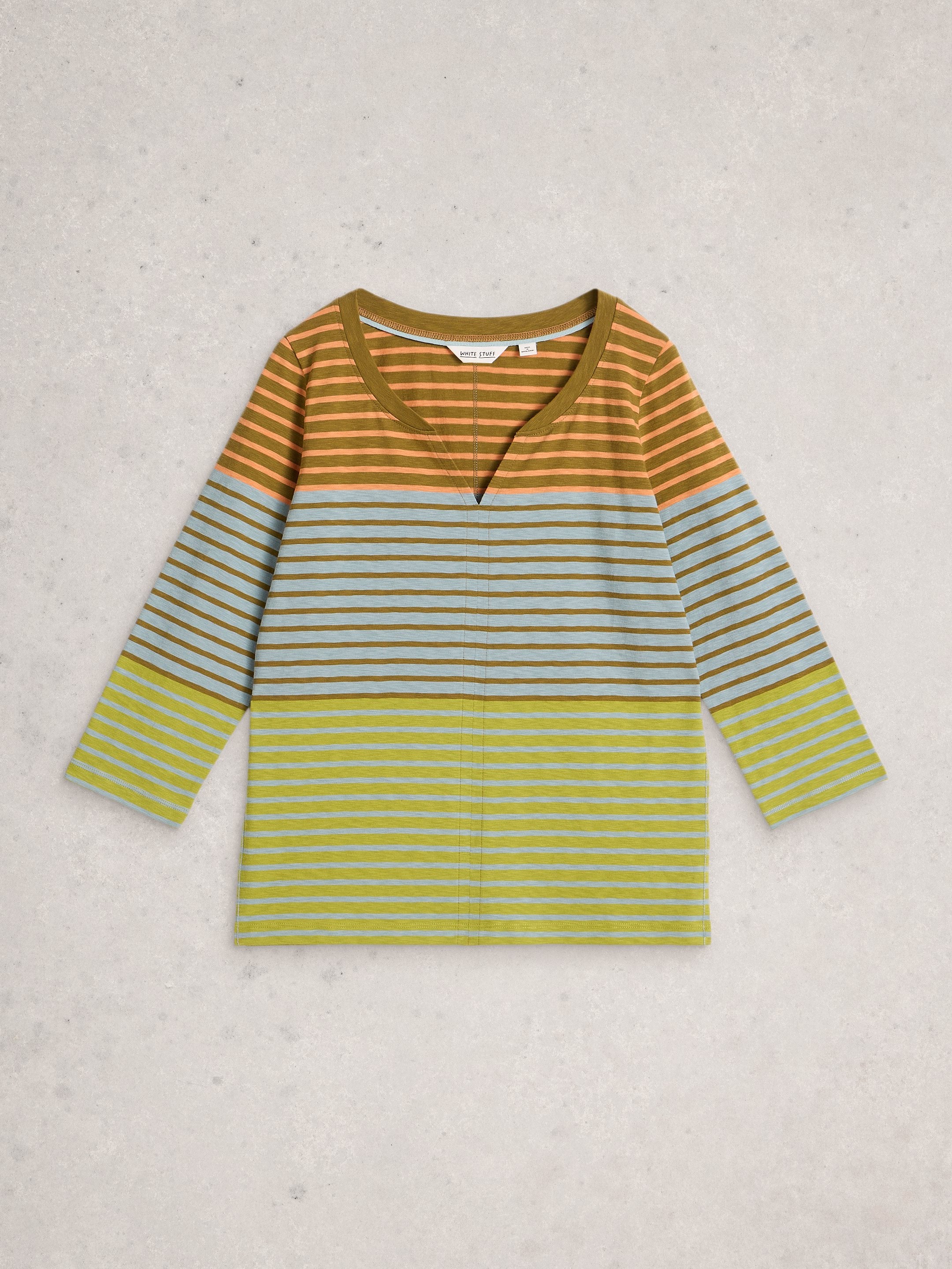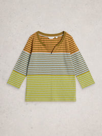 The White Stuff Nelly 3/4 Stripe Tee features a flattering notch neck and comfortable 3/4 length sleeves, making it a versatile addition to your wardrobe. Its classic fit ensures a timeless silhouette that suits every occasion, combining style and ease effortlessly. Perfect for layering or wearing on its own, this tee promises both comfort and a chic striped look you'll reach for again and again.