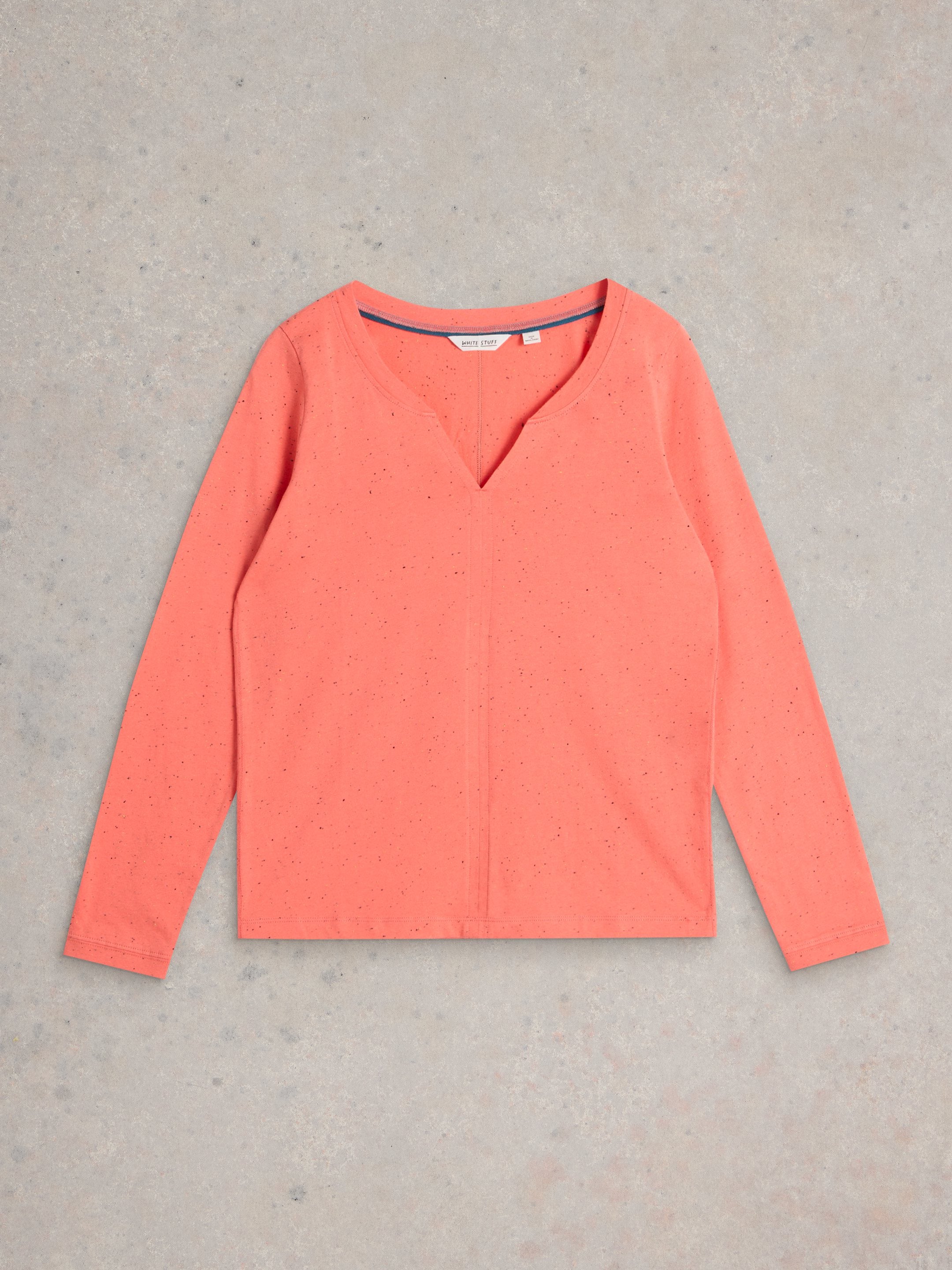 Stay comfortable and stylish in the White Stuff Nelly Nep Long Sleeve Tee, made with soft cotton fabric and designed with a notch neck and long sleeves for a timeless look. The regular fit ensures a flattering silhouette that you'll love. Perfect for any casual occasion.