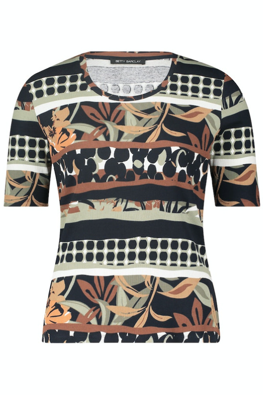 Betty Barclay women's ribbed top with half length sleeves and a floral pattern all over.