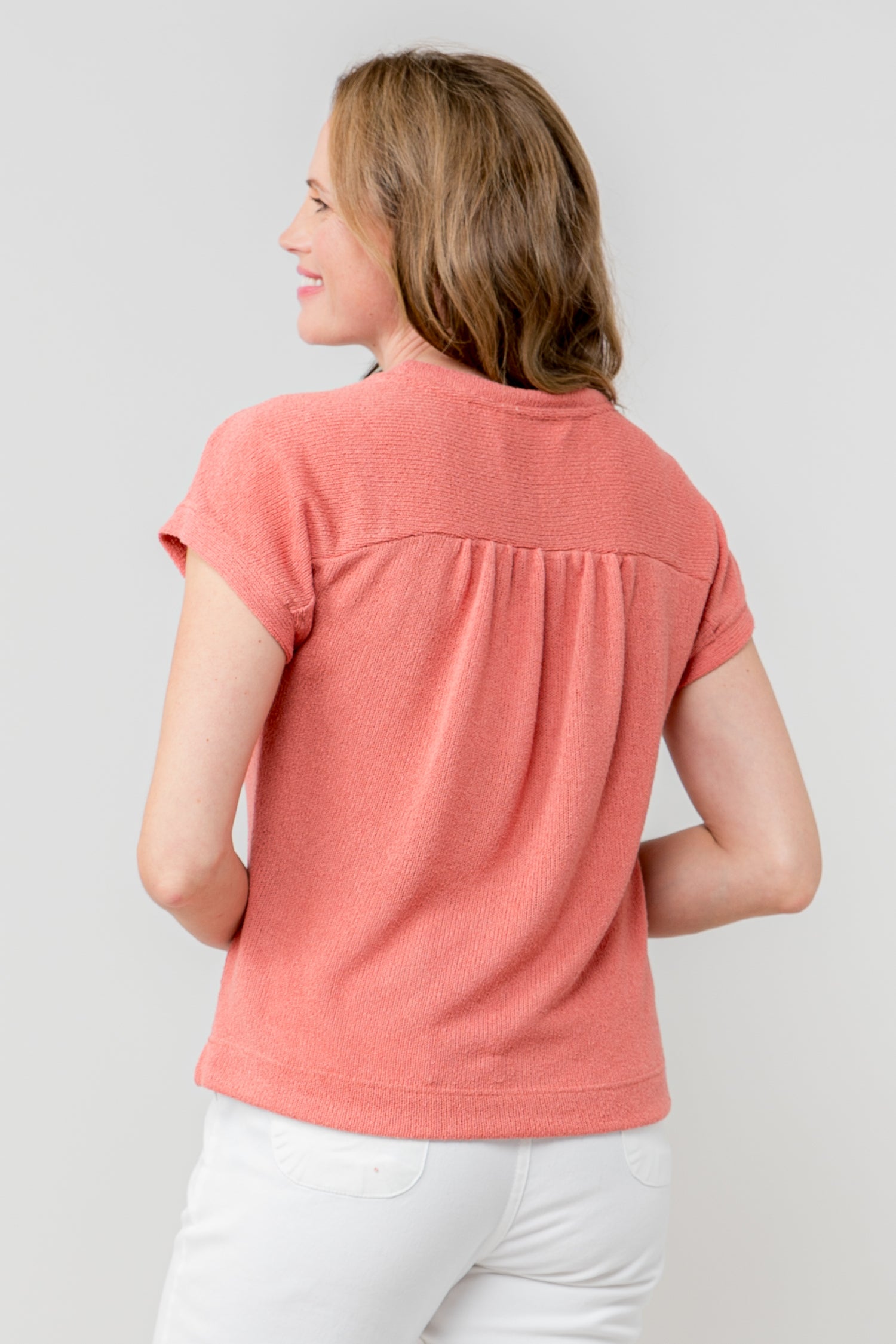 Effortlessly chic and comfortable, the Lily & Me Sara Top features a round neckline and raglan cap sleeves for a relaxed fit. The gathered back yoke seam adds a touch of elegance to this versatile top. Perfect for any occasion, it's a must-have addition to any wardrobe!