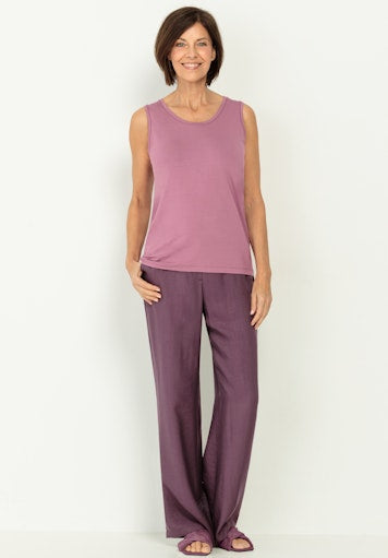The Bianca Selis Top combines timeless style with comfort, crafted from high-quality viscose blended with elastane for a soft, flexible feel. Its sleeveless design with wide straps and a round neck offers a flattering, breathable fit, while the straight, loose cut ensures ease of movement and all-day comfort. Perfect for effortless elegance in any season.