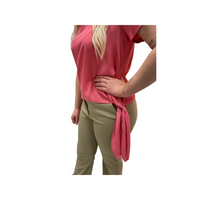 Marella women's silk mix top with short sleeves and tie detail on the side.
