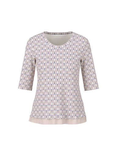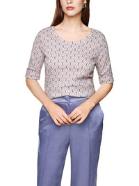 The Marc Cain Printed T-Shirt combines comfort and style with its soft cotton-elastane blend and distinctive eye-catching print. Designed with a wide round neckline and mid-length sleeves, it offers a refined silhouette. Side slits enhance ease of movement, ensuring a flattering and comfortable fit throughout the day.