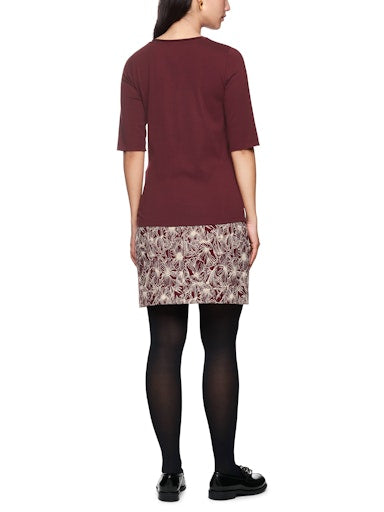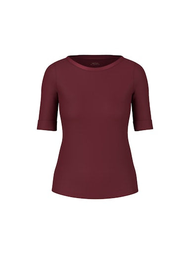 The figure-hugging Marc Cain T-Shirt combines refined simplicity with comfort, crafted from a soft blend of fine cotton and elastane. Its close-fitting silhouette is complemented by mid-length sleeves that can be casually rolled up, while the wide round neckline features an open hem for a subtle, elegant finish. Ideal for those seeking understated sophistication in everyday wear.