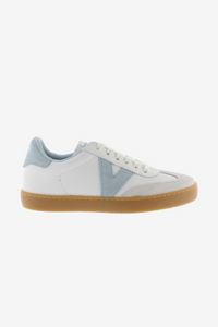The Victoria Berlin Faux Leather & Suede Cyclist Trainer is the perfect combination of style and comfort. Made with leather-effect material and suede pieces, these trainers feature pastel-tone details and a translucent caramel-coloured sole for a touch of retro flair. The recycled insole provides superior comfort with every step. Upgrade your footwear game with these women's white trainers.