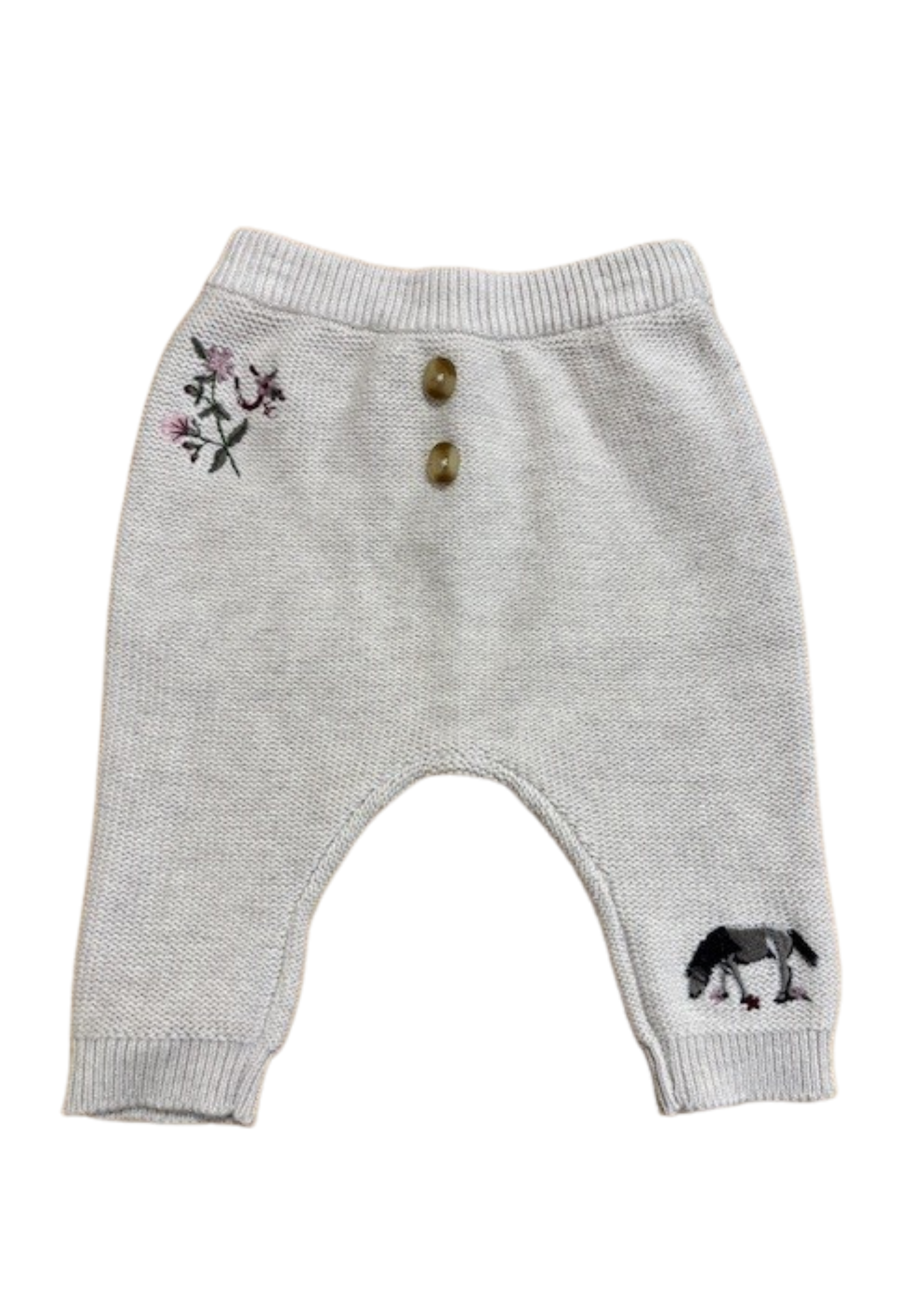 The Eleanor Charles On the Farm Joggers bring cosy comfort with their soft organic cotton knit, perfect for all-day wear. Featuring charming horseshoe floral embroidery with delightful horse and flower details, they add a playful touch to any outfit. The elasticated waist makes changing a breeze, while ribbed cuffs keep the fit snug and secure during every adventure.
