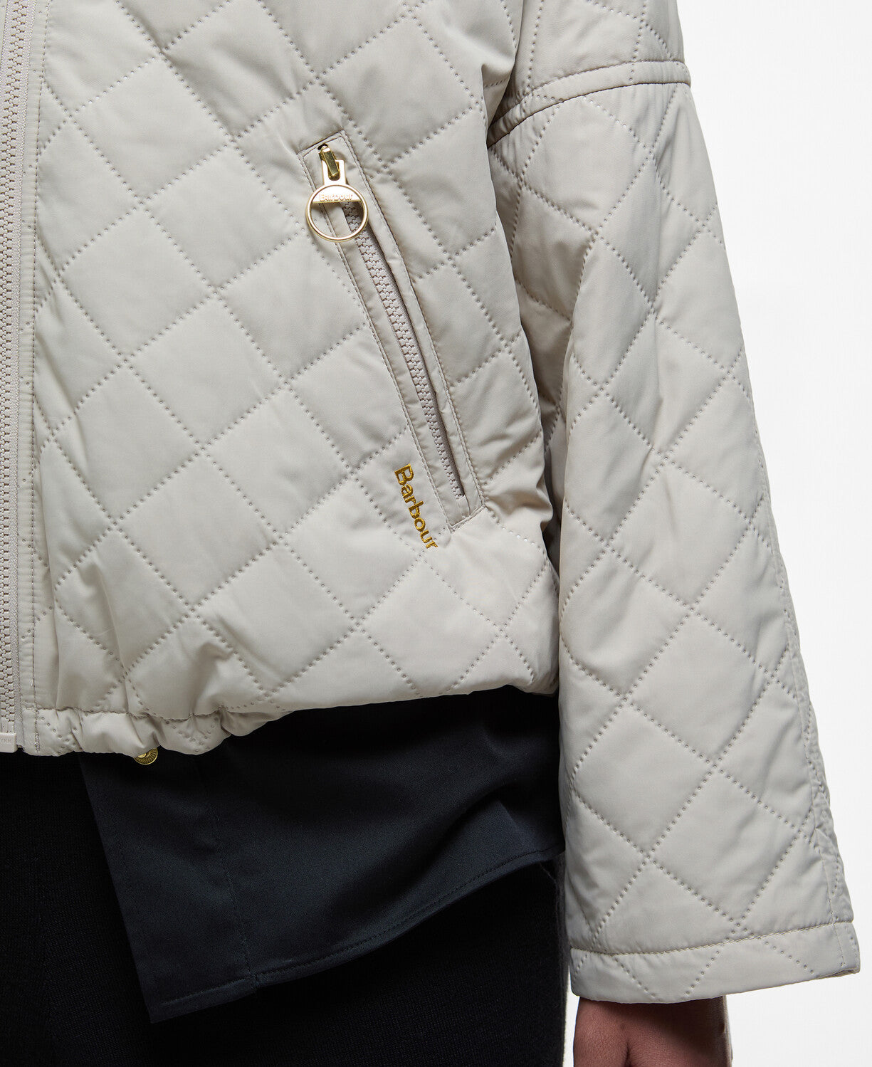 Experience both style and comfort with the Barbour Emlyn Quilted Jacket! The quilted design provides warmth while the relaxed fit and dropped shoulders offer a comfortable and trendy look. With a ribbed collar, zip fastening, and convenient pockets, this jacket is both practical and fashionable.