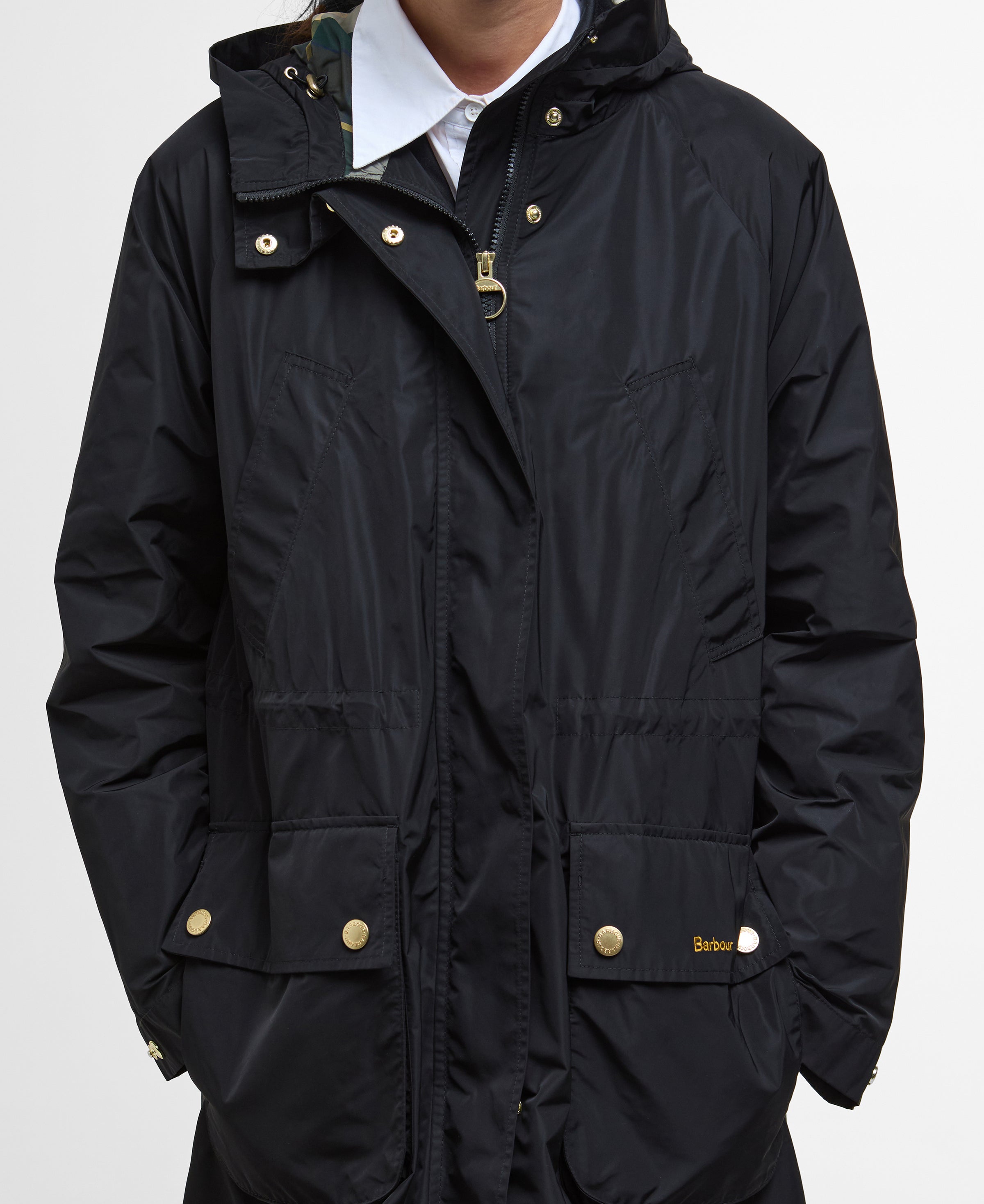 Stay stylish and dry with the Barbour Una Showerproof Parka. Featuring a lightweight, breathable fabric and classic Barbour tartan lining, this fishtail design also includes elasticated cuffs and a drawcord waist for the perfect fit. Conquer any rainy day in style!
