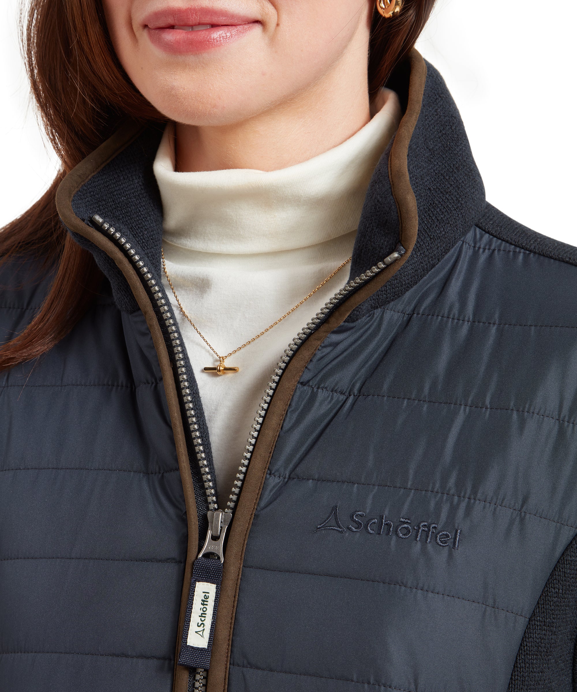 Experience unmatched warmth and comfort with the Schoffel Burley Hybrid Jacket. Featuring baffled front panels and premium knitted fleece on the back and sleeves, it offers cosy insulation. The two-way front zip and adjustable waist drawcord ensure a perfect fit, while lined sleeves provide effortless movement. Secure your essentials in two external zip pockets, all accented with Schöffel’s signature brown trim for a refined look.