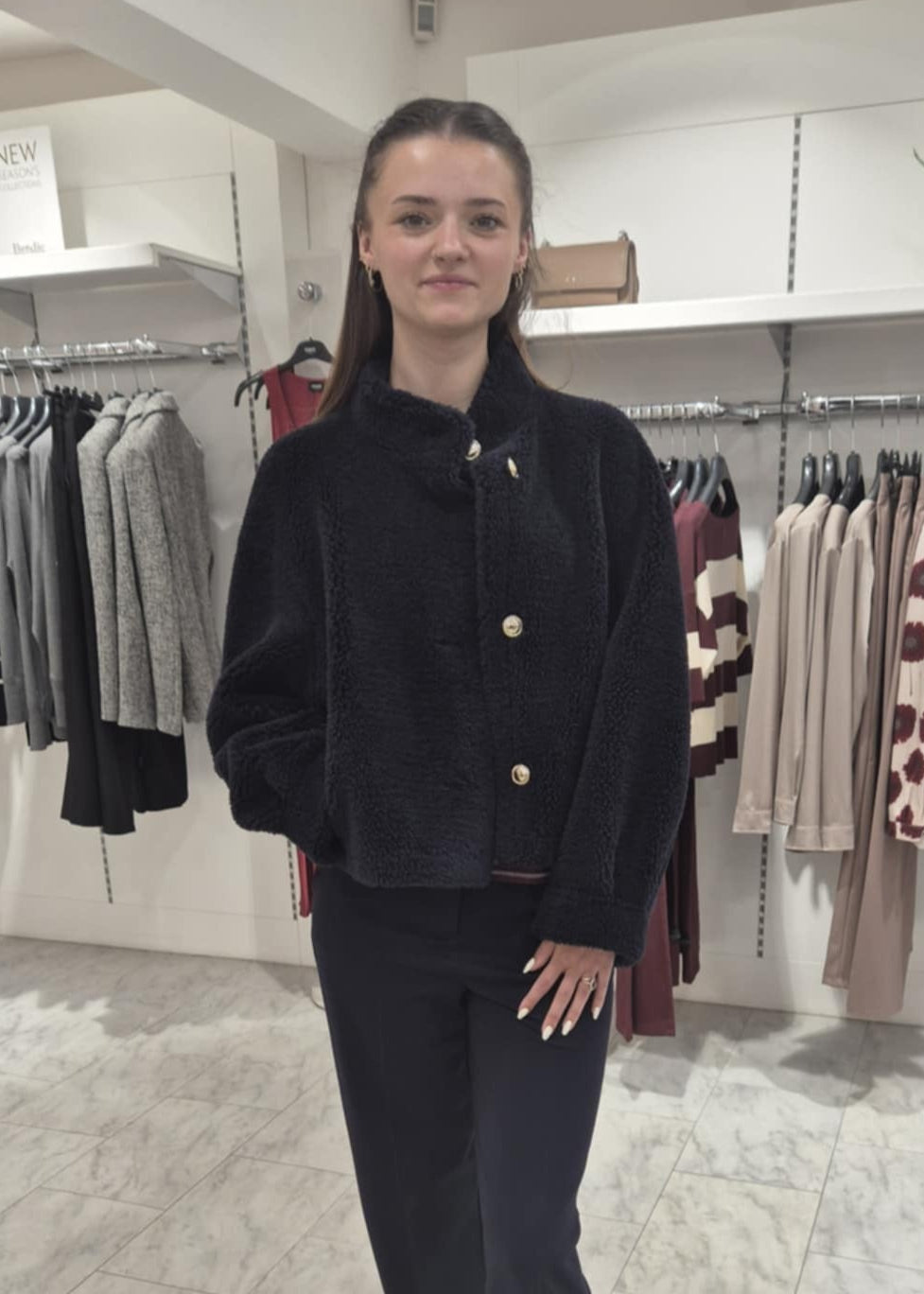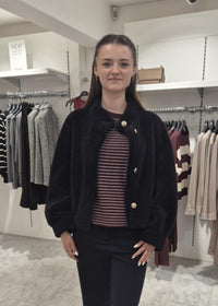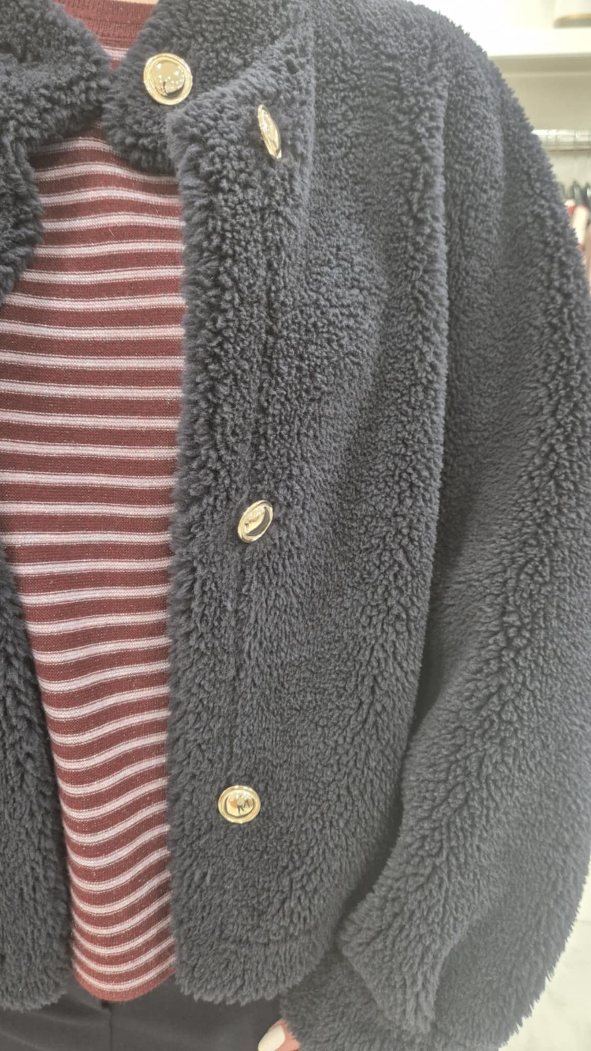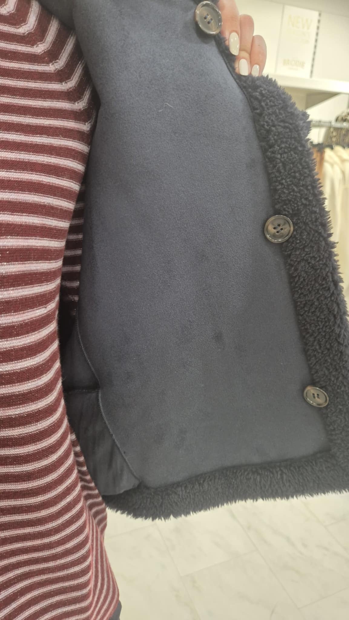 The Emme Vicenza Faux Fur Coat offers a sophisticated reversible design, featuring plush Teddy fabric on one side and luxurious shearling on the other. With a cropped length, long sleeves, and elegant button fastening, this coat combines versatility and style for a refined, contemporary look.