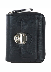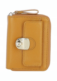 The elegant Ashwood Leather Purse combines style and security with its RFID protection and golden hardware accents. Designed for organisation, it features a zip pocket with two compartments, a rear slip pocket, and a press-stud bifold section housing eight card holders and a cash pocket. The front flap pocket with a twist lock adds easy access while keeping your essentials safe. Perfect for those who value both functionality and sophistication in their everyday accessories.
