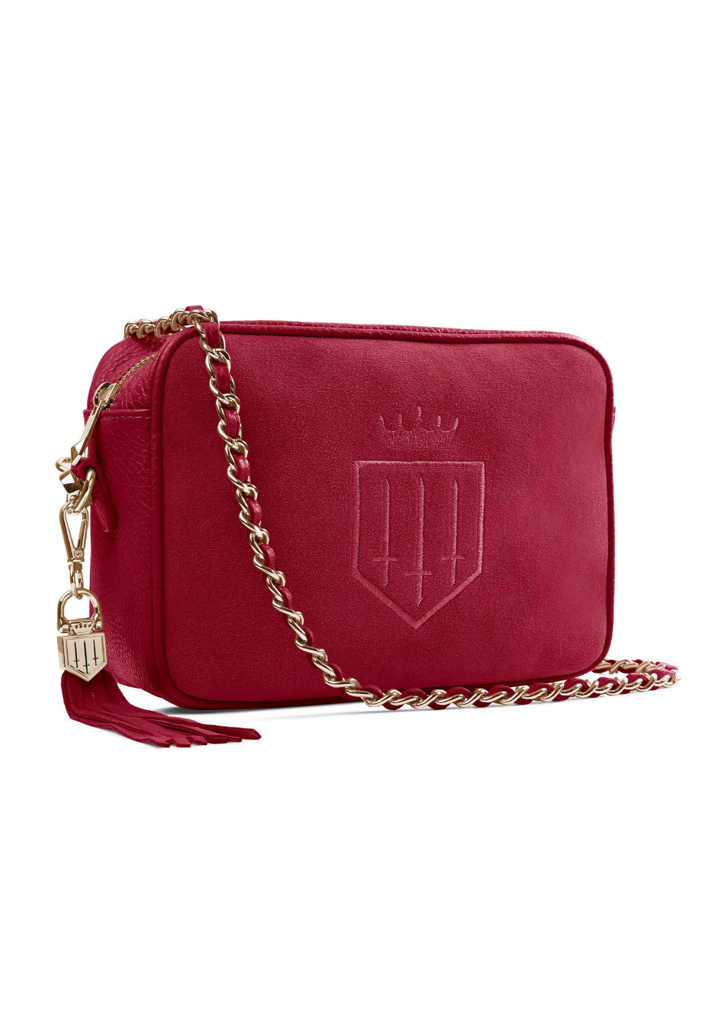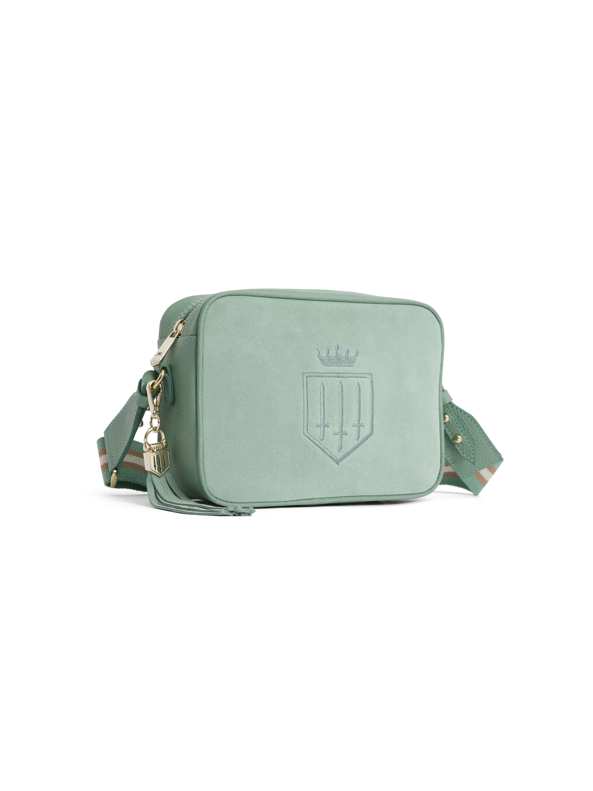 Introducing the Fairfax & Favor Finsbury Bag, your new versatile and stylish companion. Made from premium soft suede with a detachable strap and iconic suede tassel, it exudes refined style. Handcrafted in Europe with a tonal embroidered logo and gold hardware, it offers a main zipped compartment, internal pocket, and chevron-shaped back pocket for organisation. Elevate your everyday look with this classic camera bag shape.