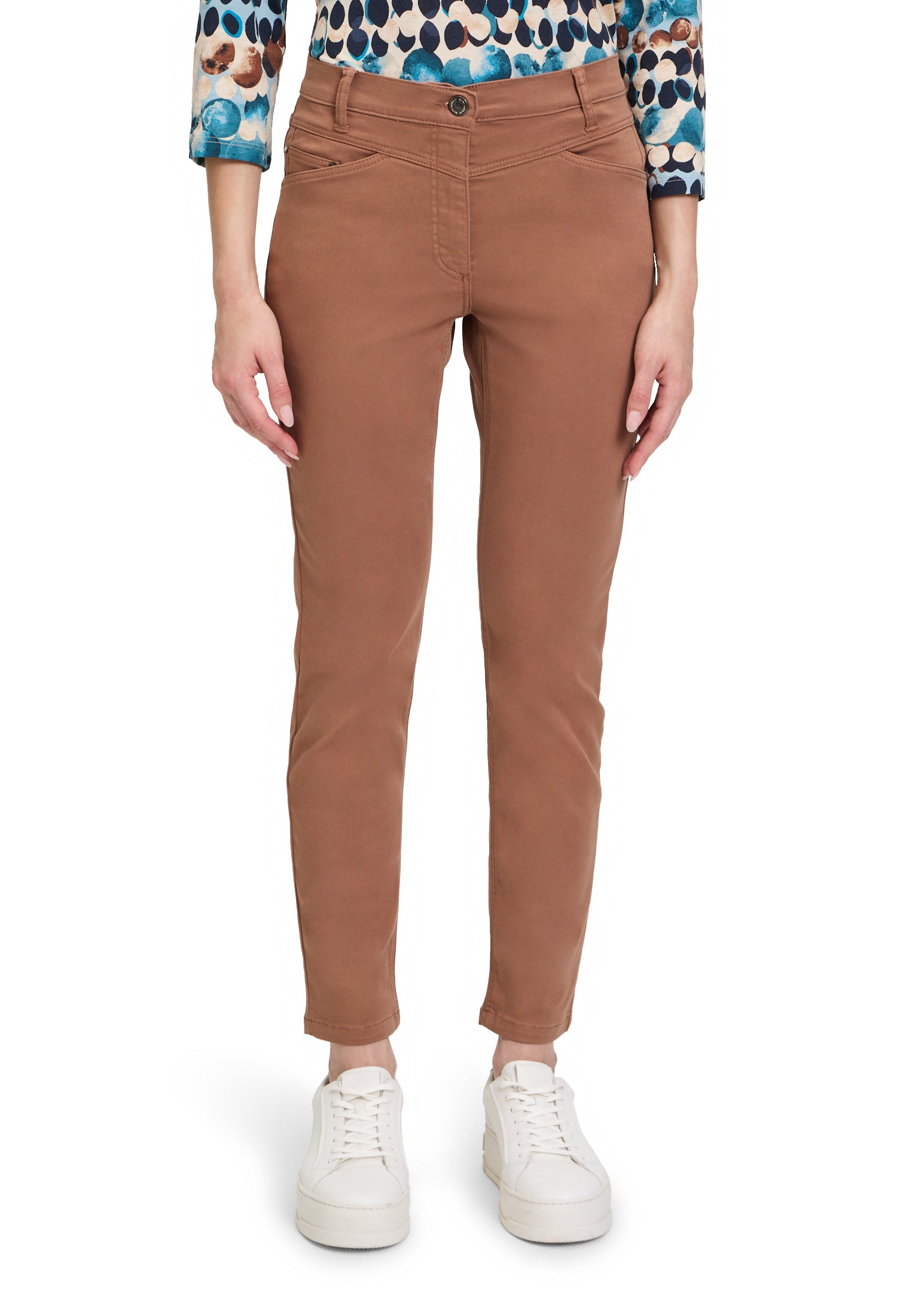 Experience comfort and style with the slim-fitting Betty Barclay Casual Trousers. The mid-rise design flatters your figure, while the functional pockets provide convenience. With a button and zip fastening, these trousers are both practical and flattering. Elevate your everyday look with these must-have trousers.