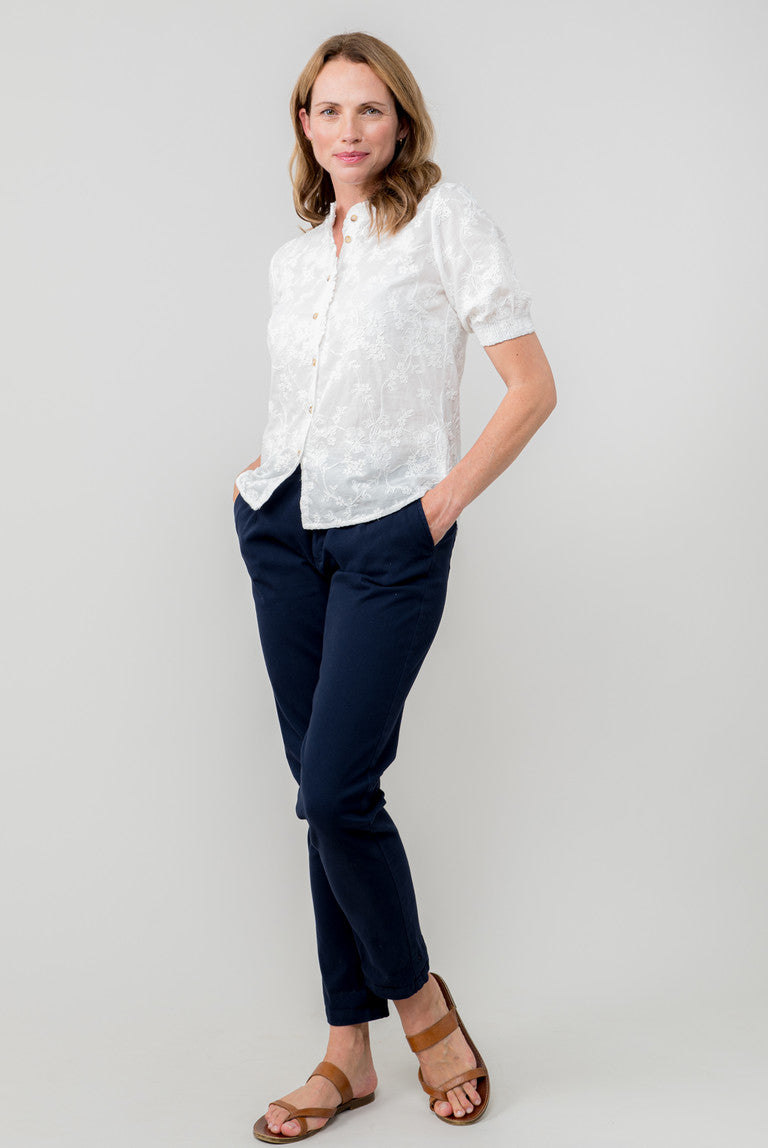 Upgrade your wardrobe with the Lily & Me Breaker Trousers Twill! Made of soft cotton twill fabric, these full length trousers offer stretch for ultimate comfort. With side and back pockets, and a button front with an elasticated back, these trousers are both functional and fashionable. Add some fun to your style with our quirky twist on traditional trousers.