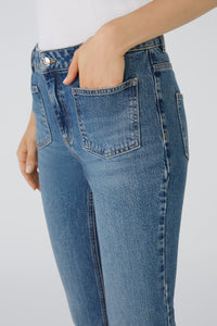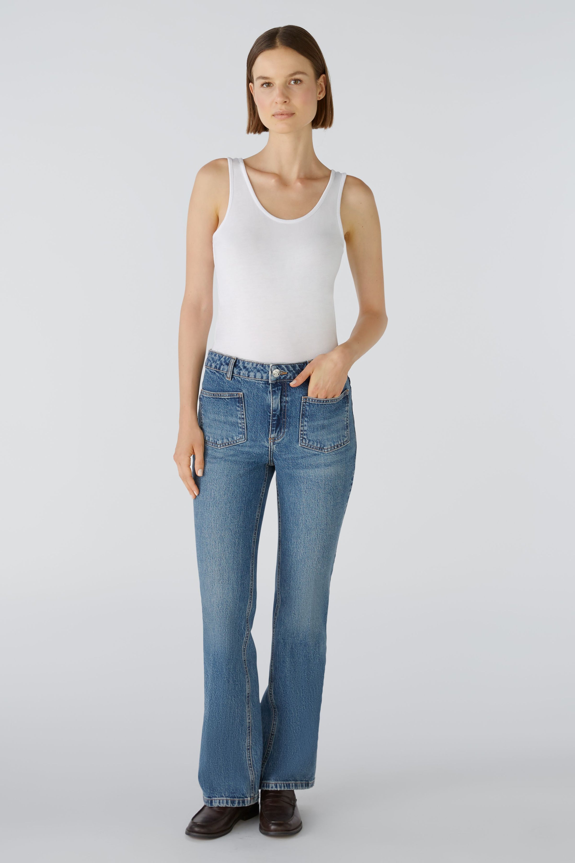The Flared Mid Rise Jeans by Oui combine comfort and style to offer a classic fit with a modern twist. Crafted with premium quality denim, the jeans provide a flattering mid-rise waistline and fit perfectly around the hips and thighs. The flared leg is designed to elongate the leg line, and its unique wash ensures a timeless look.