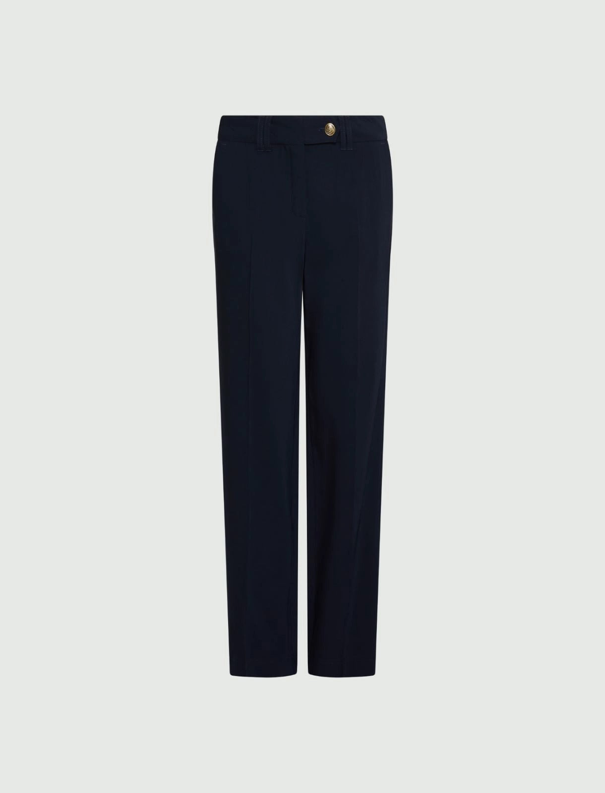 Indulge in luxury with the Marella Nasco Long Trousers. Made with washed stretch viscose and wool, these trousers offer supreme comfort and a sophisticated straight fit. Perfect for any occasion, the button fastening, belt loops, and sleek pockets add stylish detail to these must-have trousers.
