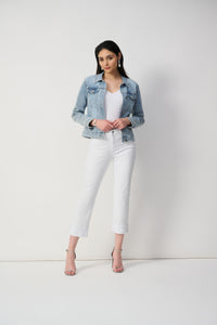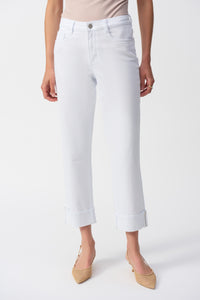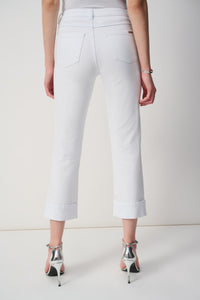 Indulge in sophistication with the Joseph Ribkoff Cropped Pants. The slim fit and cropped length flatter any figure while the rhinestone trim adds a touch of elegance. The stretch fabric and pockets provide both style and convenience. Complete with a zip and button fastening, these jeans are the epitome of exclusive fashion.