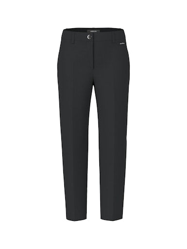 The Marc Cain Fordon Trousers offer a sophisticated feminine fit with a high waistband secured by a zip and button. Crafted with stretch fabric, they provide comfort and ease of movement. The straight-cut legs feature a refined cropped length and a crisp crease, perfect for a polished, elegant look.