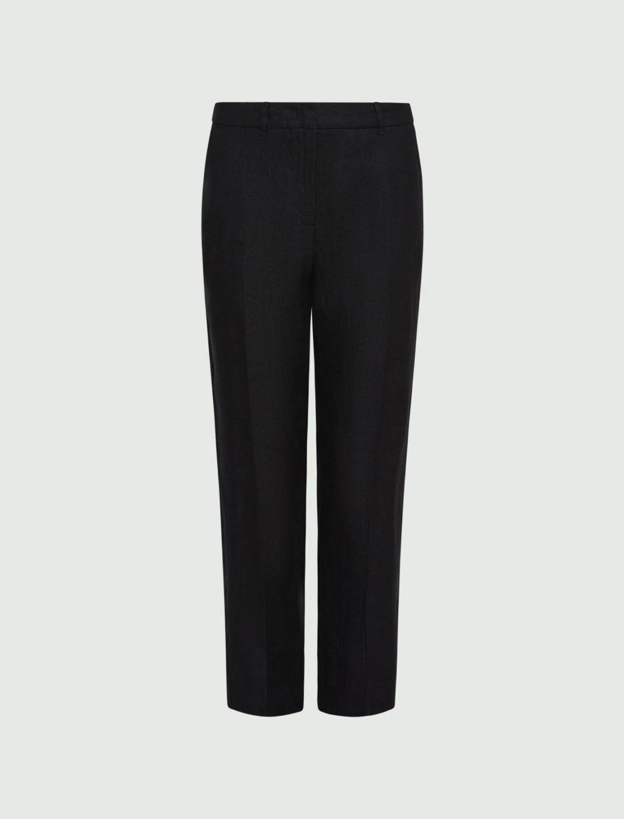 Elevate your wardrobe with the Marella Perugia Trousers. Crafted from pure herringbone linen fabric, these trousers boast a regular fit and zip and button fastening. The pressed pleat detail on the front and back adds a touch of sophistication. Complete with slant side pockets and welt rear pockets, these trousers offer both style and practicality.
