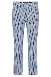Effortlessly chic and stylish, the Robell Bella Trousers 09 offer a slim fit and a 68cm length for a flattering silhouette. The zip and button fastening, pockets, and belt loops add functionality and versatility to this must-have wardrobe staple. Elevate your look with the elegant pattern and feel confident all day long!