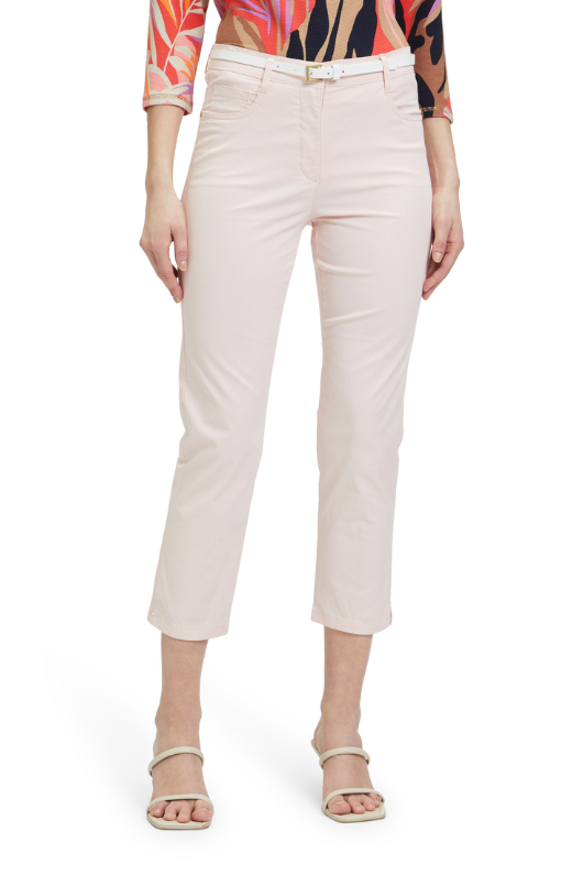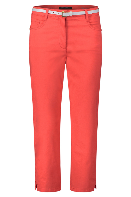 Elevate your wardrobe with Betty Barclay's slim fit, mid-rise trousers. The cropped length is both flattering and feminine, while the pockets and button & zip fastening add functionality. Perfect for any occasion, these trousers are a must-have for any woman looking for both style and comfort.