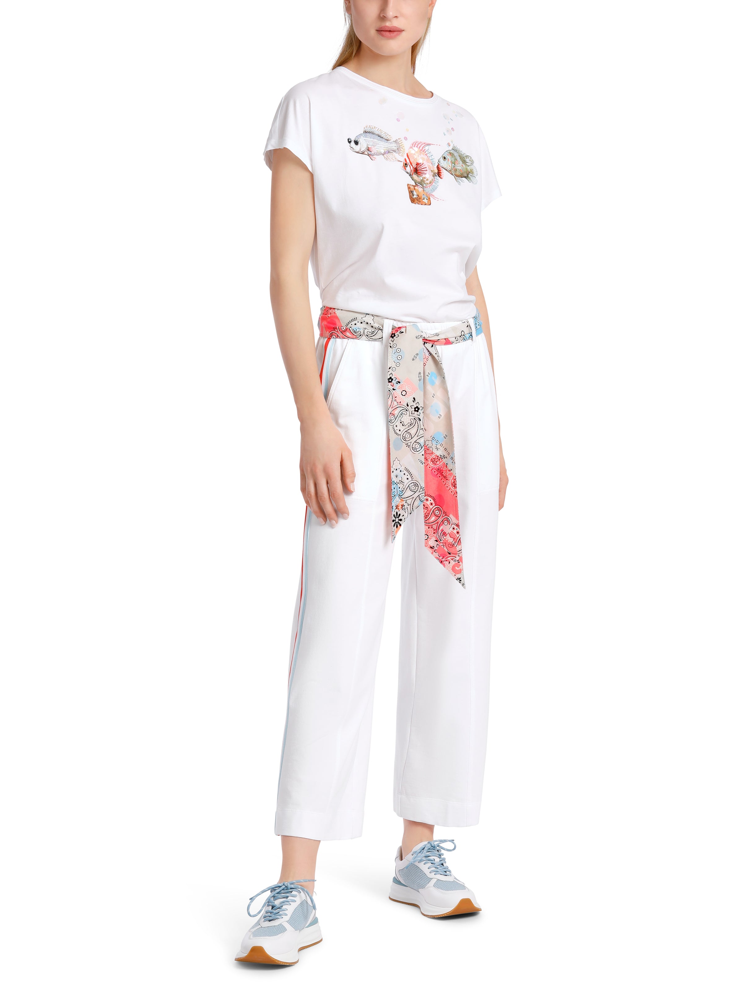 Elevate your wardrobe with the Marc Cain Washington Wide Leg Trouser! Featuring a flattering wide leg design and a chic scarf belt detail, these trousers provide a casual yet sophisticated look. Perfect for any occasion, these trousers will make you look and feel confident and stylish. Experience comfort and style like never before!