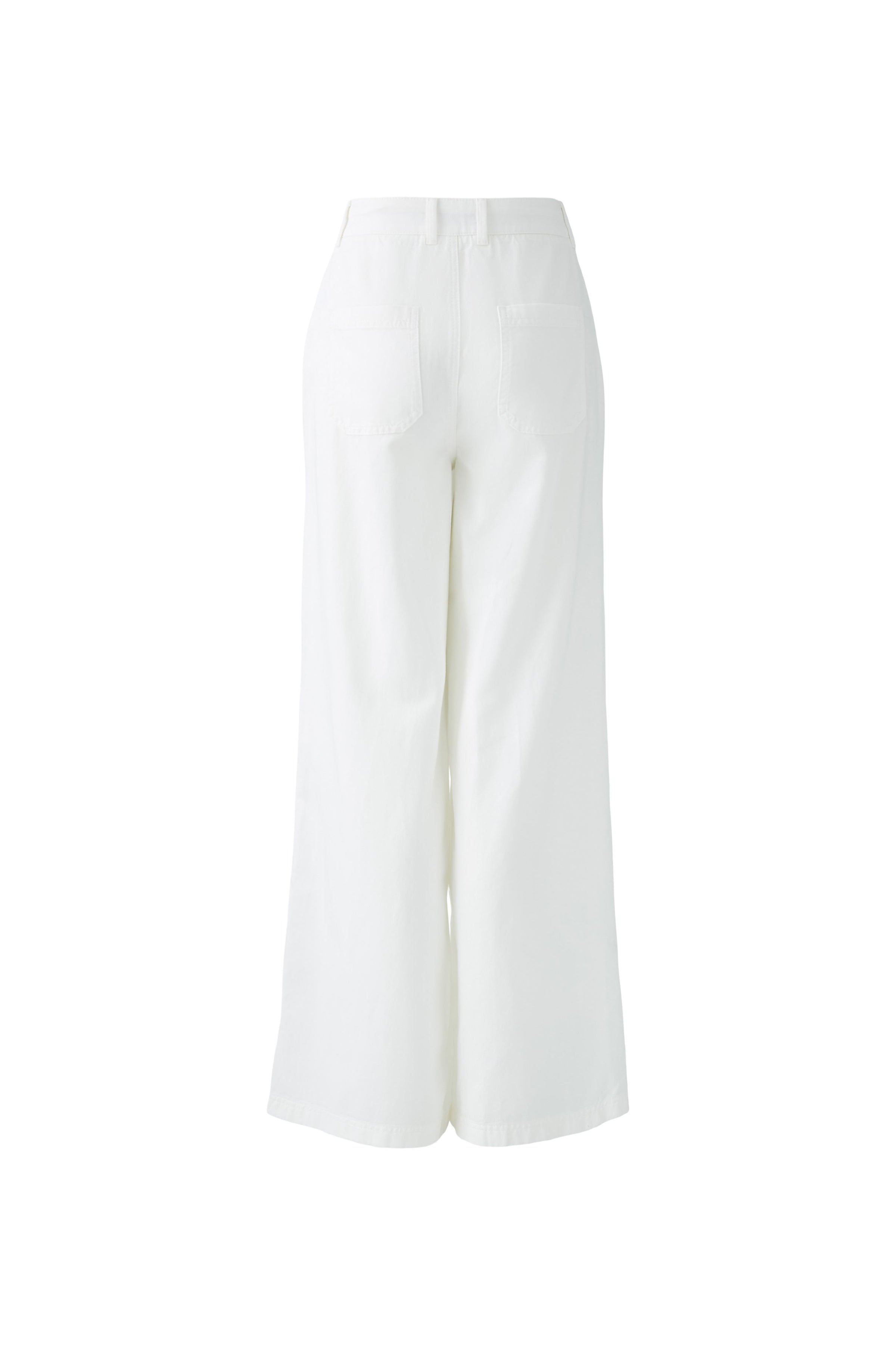 Experience the ultimate comfort and style with the Oui Woven Trousers. Made with a super soft cotton-lyocell blend, these trousers are perfect for any occasion. The relaxed fit, high waist, and regular length provide a flattering silhouette, while the waistband with belt loops, button and zip fastening, and included tie belt add extra charm. Complete your look with the convenient slit pockets and patch pockets.