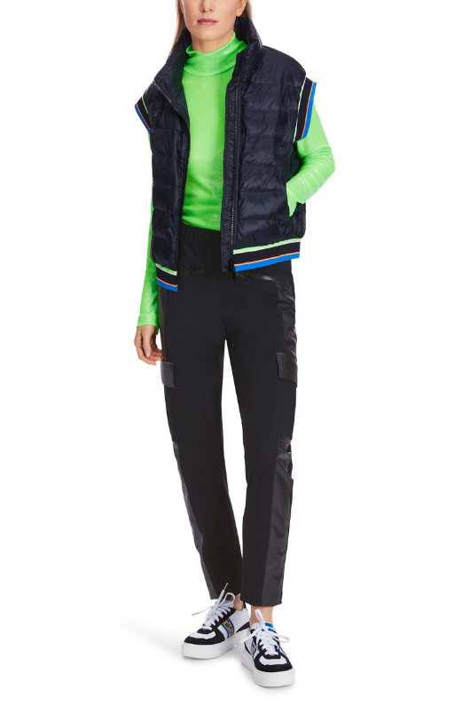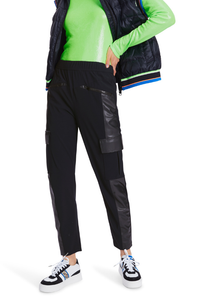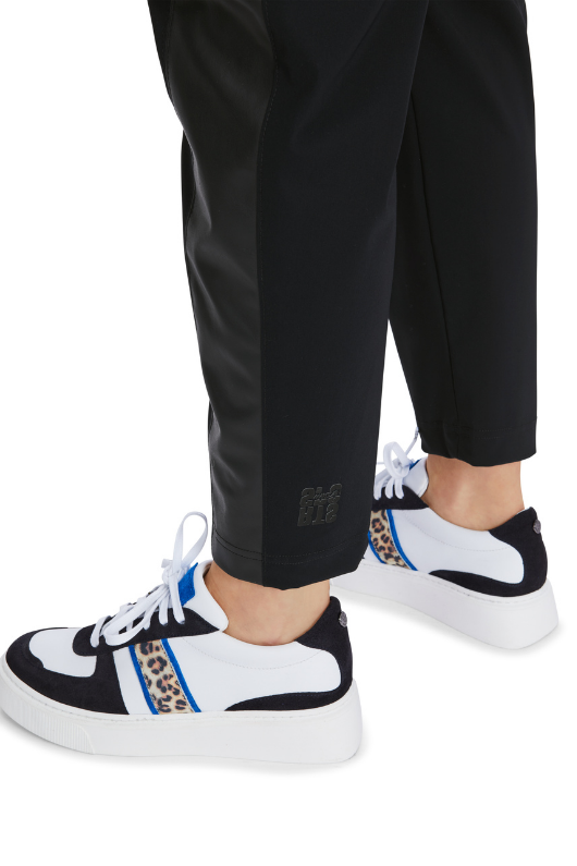 Elevate your style game with these faux leather patched Marc Cain Trousers. The elasticated waistband ensures a comfortable fit, while the straight fit and mid rise provide a flattering silhouette. Perfect for any occasion, these trousers also feature practical pockets for added convenience. Upgrade your wardrobe with these must-have trousers today!