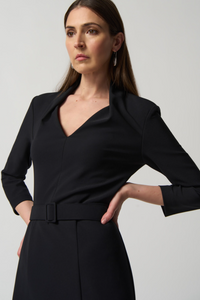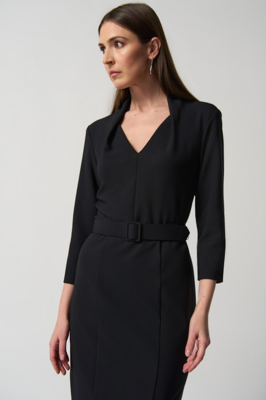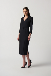 Look smart with this Joseph Ribkoff women's fitted dress with 3/4 length sleeves and a matching belt for a flattering fit.