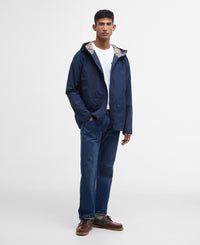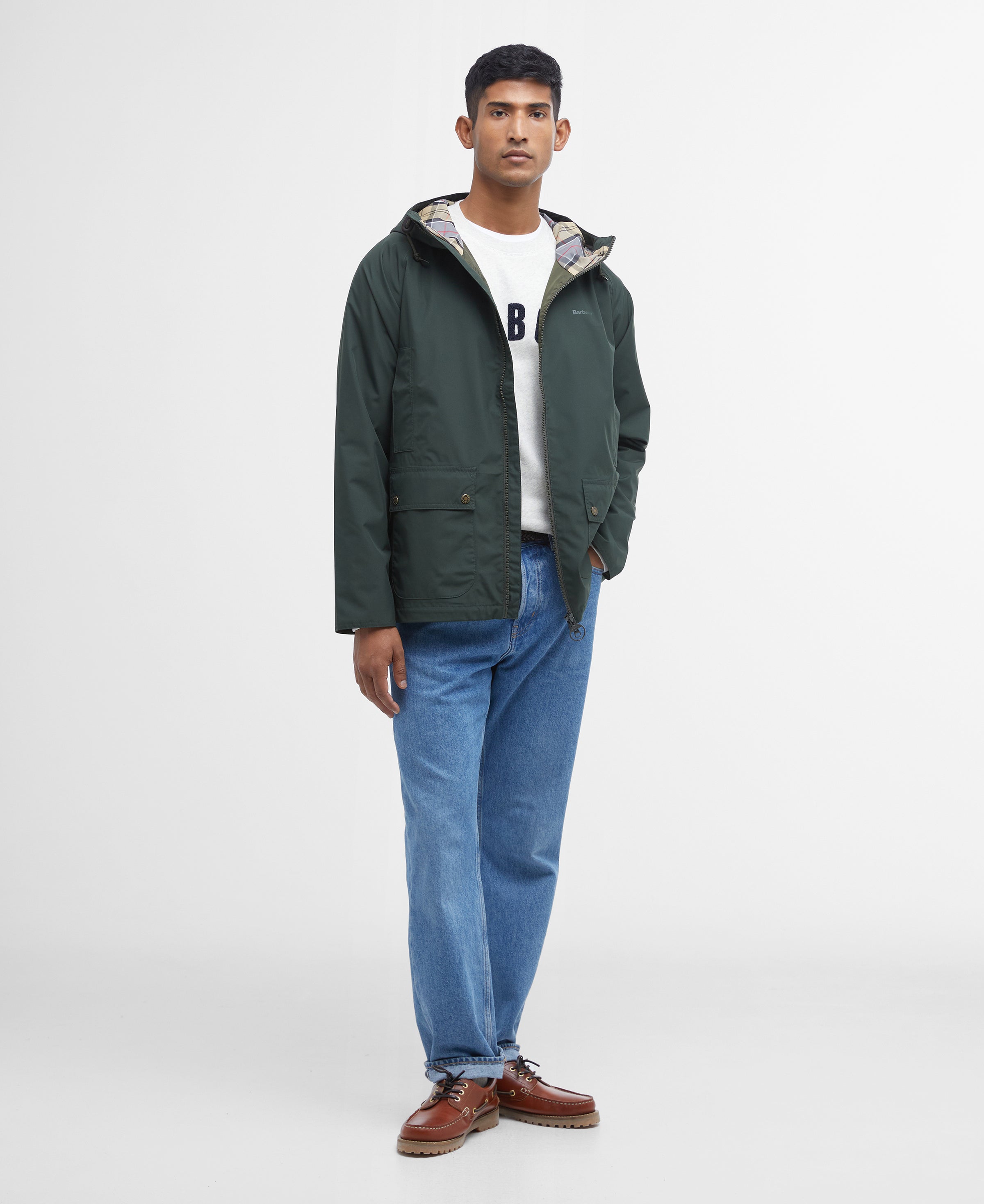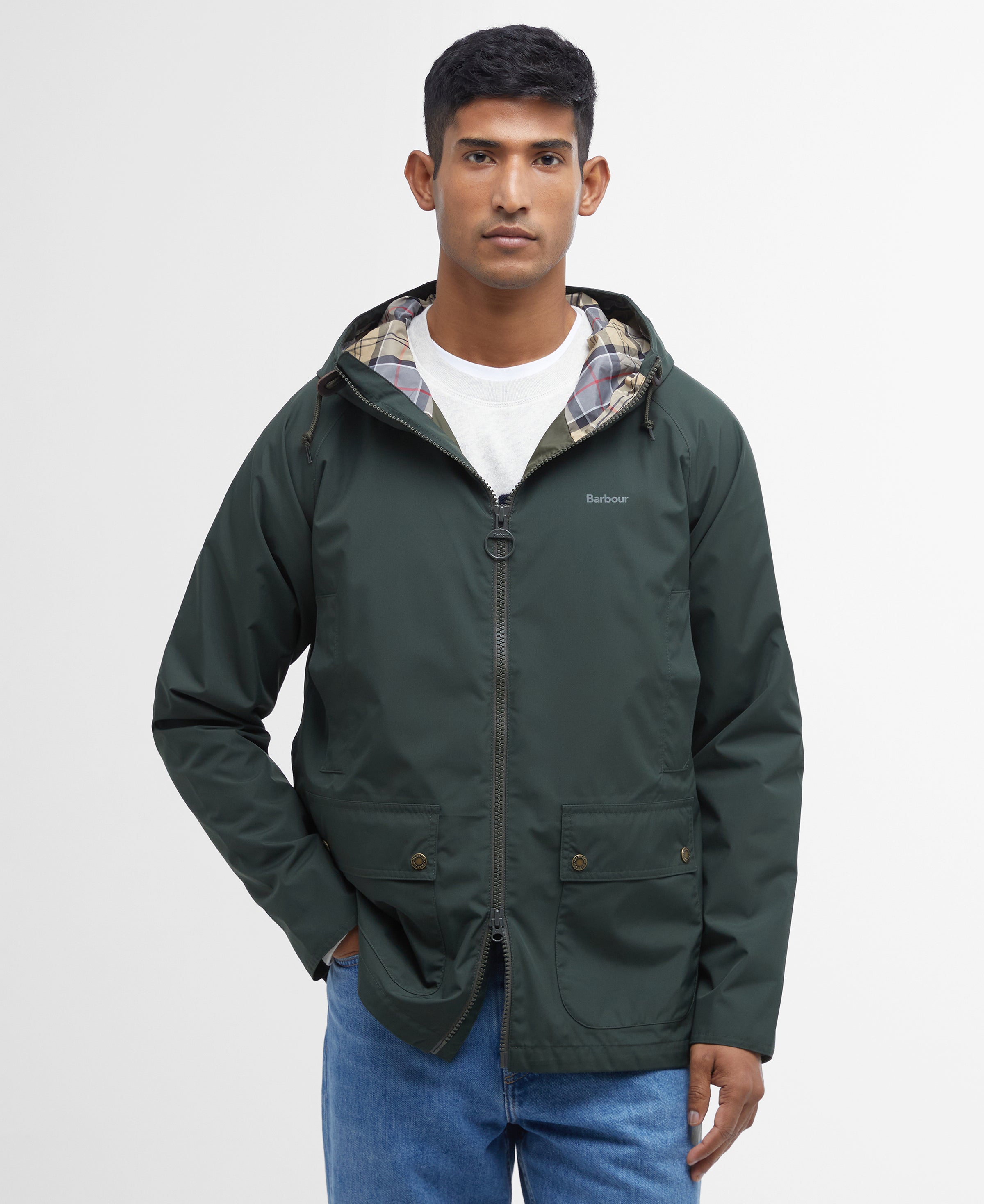 Stay dry and stylish with the Barbour Hooded Domus Jacket. This men's jacket features a waterproof design, a tartan lined hood, and zip fastening for maximum protection. The handwarmer pockets add extra warmth, while the iconic Barbour branding brings a touch of authenticity. Upgrade your outerwear game with this must-have piece!