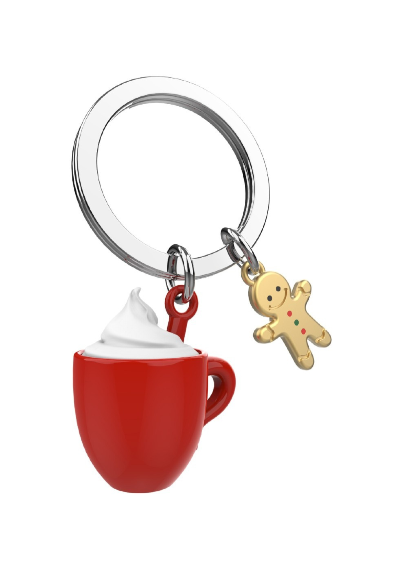 Cosy Mug with Whipped Cream & Gingerbread Man Keyring
