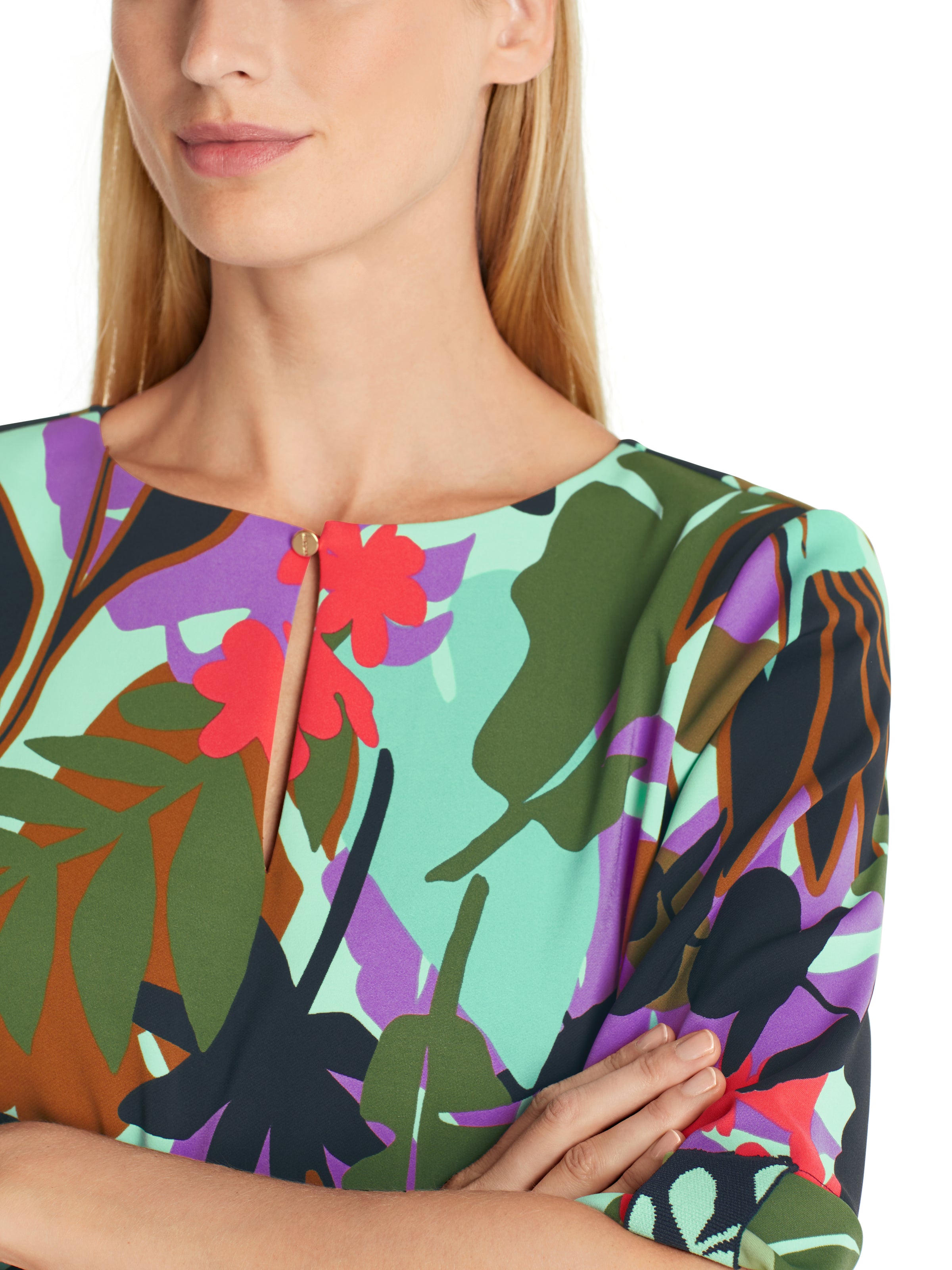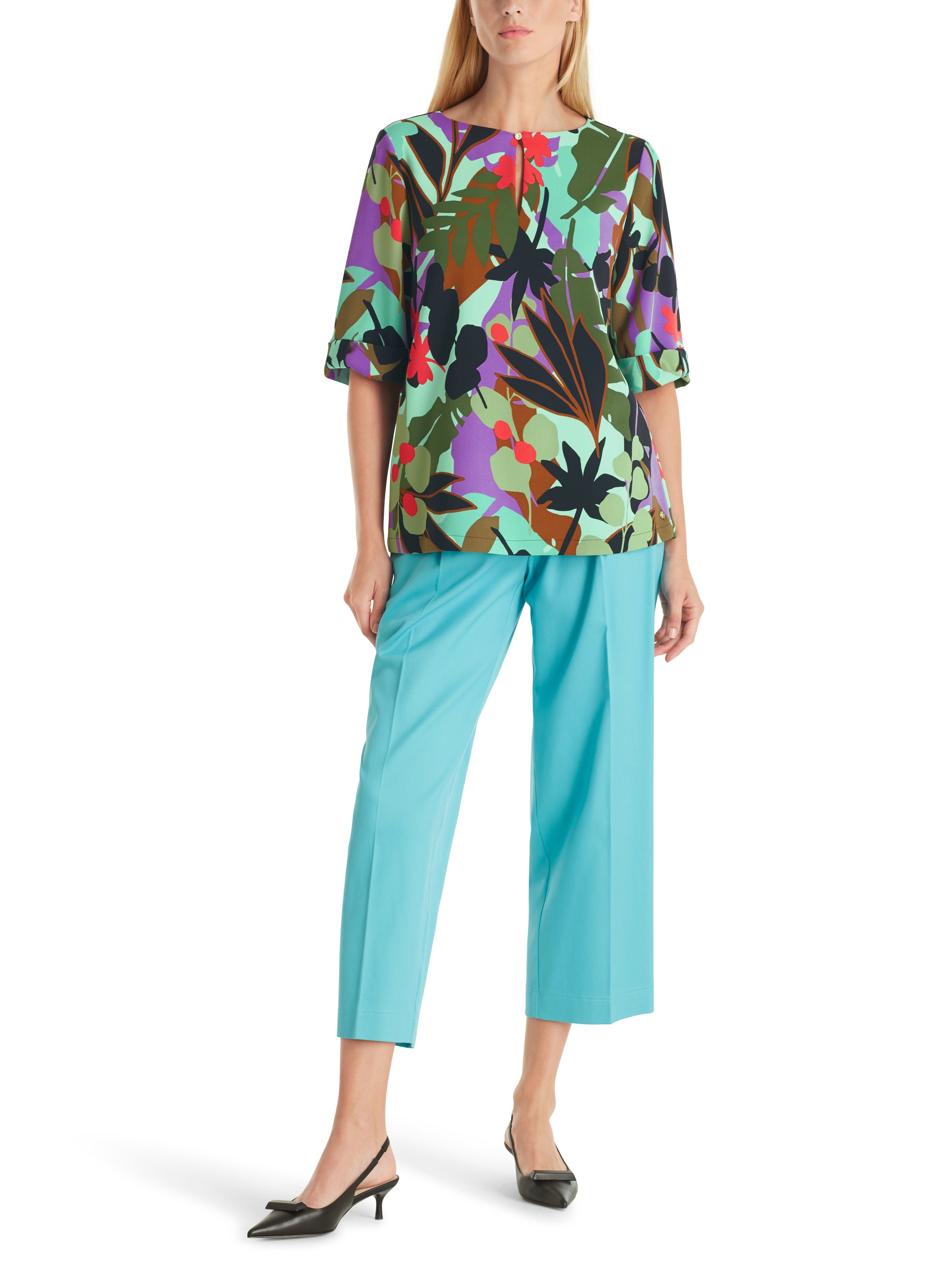 Add a touch of sophistication to your look with Marc Cain's Floral Blouse. Crafted from a lightweight material with a beautiful malachite hue, this classic blouse is perfect for any occasion. Its timeless design and vibrant colour will add a touch of elegance to any outfit.