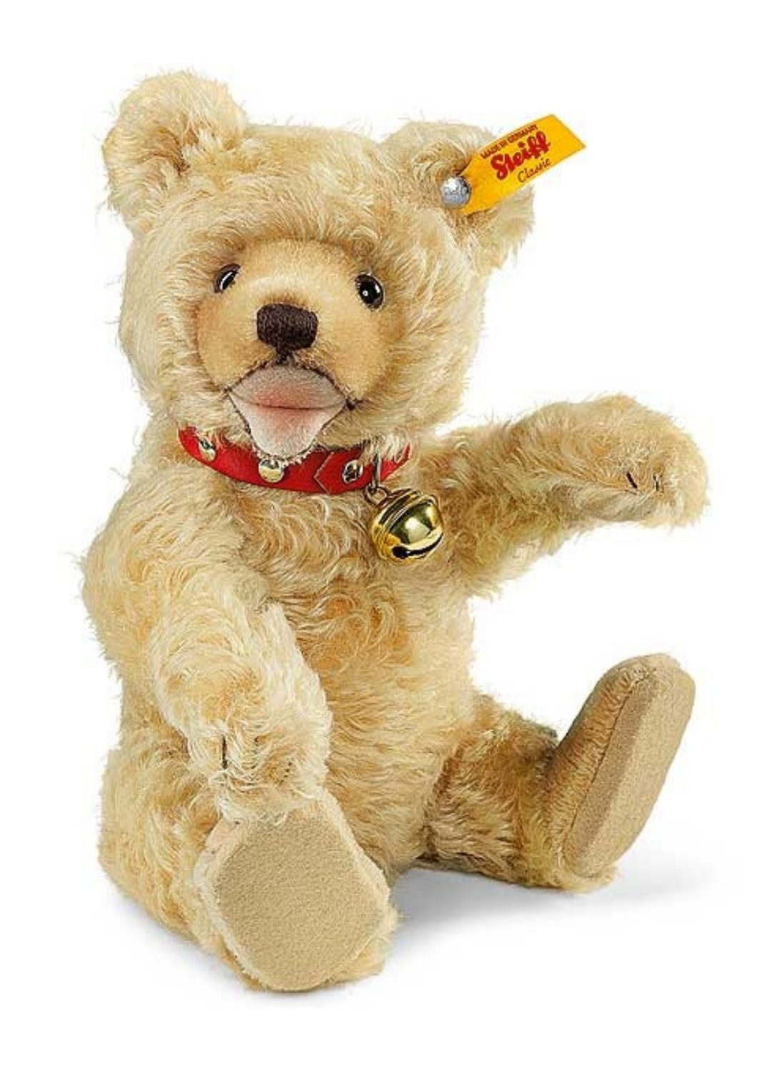 Meet Steiff Teddy Baby, the lovable and fully jointed teddy bear in light blond mohair. With an iconic Steiff Button in ear and a playful opened mouth and back facing paws, this cuddly companion is a timeless classic. Originally designed with these features, Teddy Baby is a must-have for any teddy bear collector.