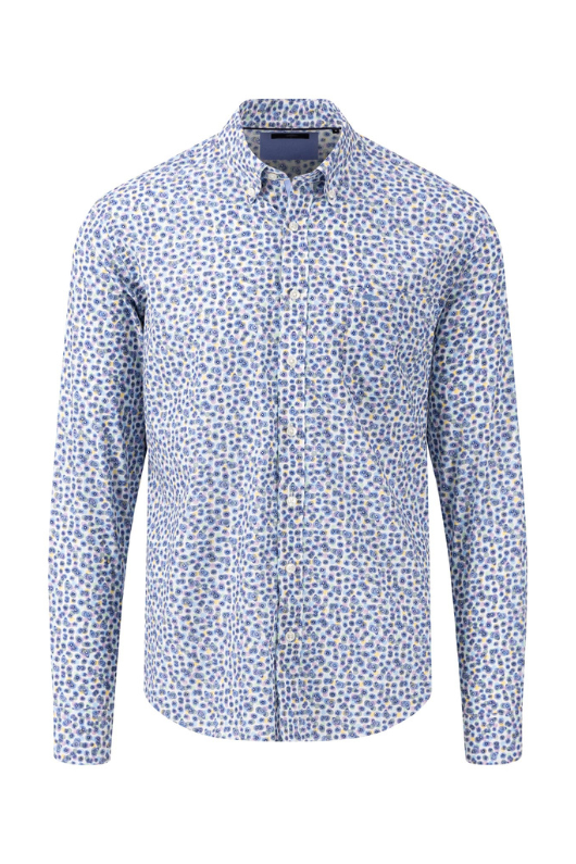 This Fynch-Hatton long sleeve print shirt features a casual fit and minimalist design, perfect for any occasion. The button down collar adds a touch of refinement while the width-adjustable cuffs provide comfort and versatility. Complete with a chest pocket and embroidered logo, this shirt is both stylish and functional.