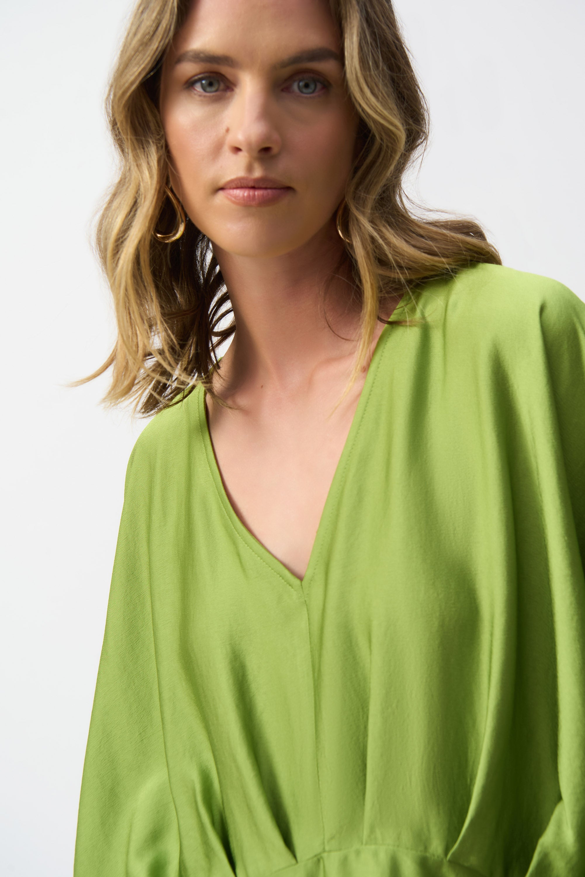 Indulge in the effortless elegance of the Joseph Ribkoff Peplum Top. With a relaxed fit and peplum style, this top flatters all figures. The draped sleeves and V-neck add a touch of femininity. Perfect for summer, this top will elevate any outfit to a luxurious level.
